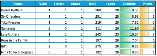 | Barrys Battlers | v | Mitre10 Tech Sloggers |